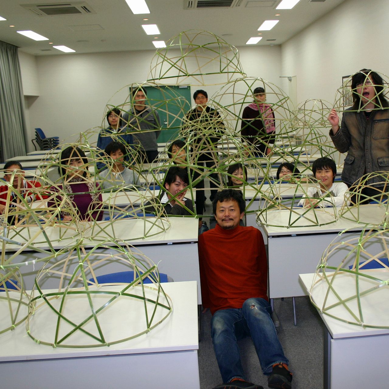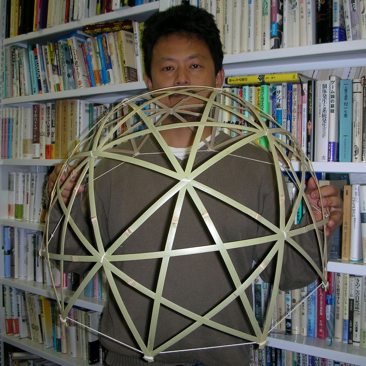 自分で組み立てる円周180センチのスター★ドームのインテリアキット。美しい真竹のフレームは、熊本の竹職人に委託して製造しています。和紙をはればランプシェードとして使うこともでき、上品なお部屋のインテリアとして最適です。各地のクリスマスイルミネーションとしても使われています。イルミネーションには組み立てやすいFPなしのものをおすすめします。FPありのキットは、居住用のスター★ドームと同じ構造です。